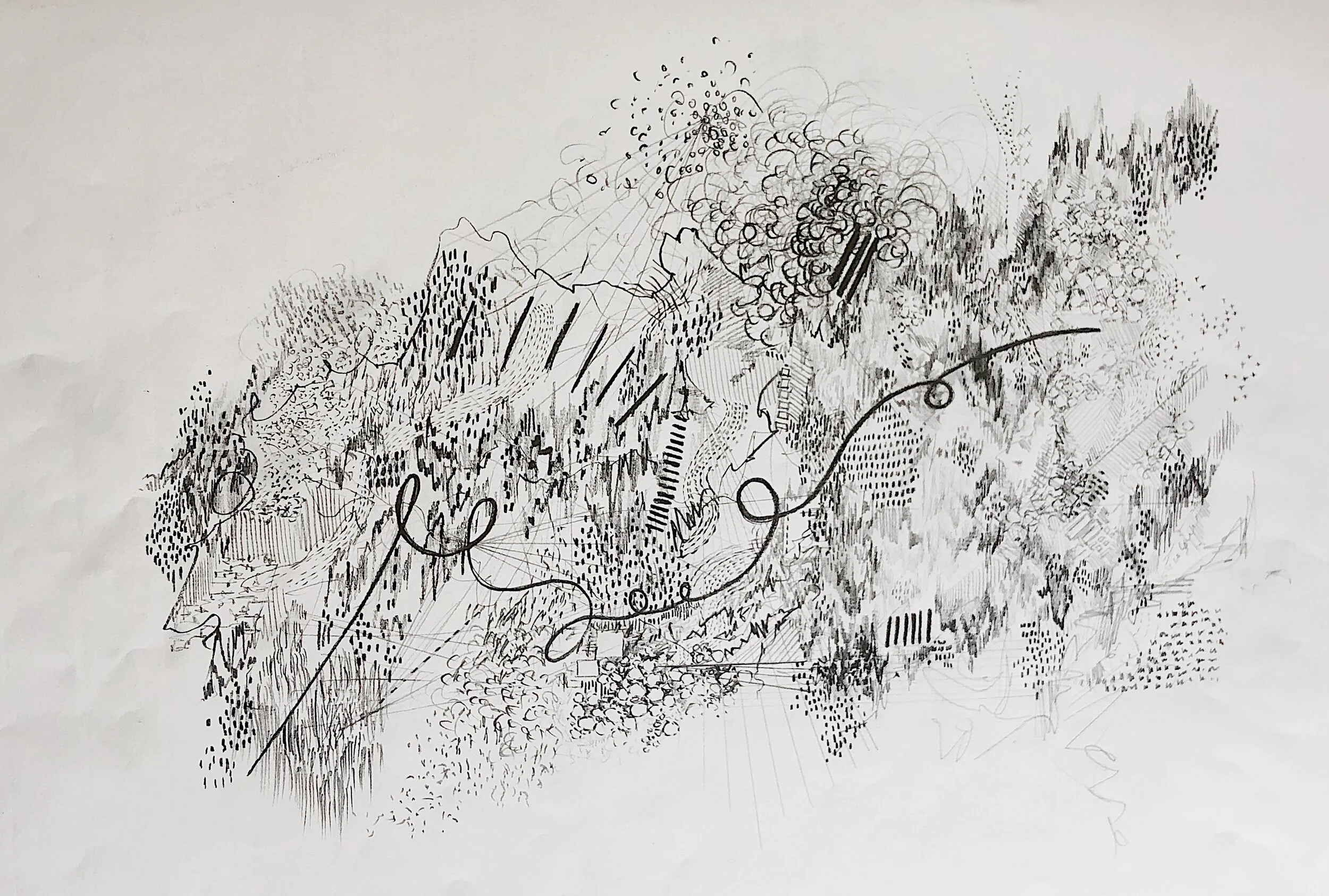 Using satellite maps as the starting point, Tisma plots carefully considered lines that reference real, physical environments and entangles evocative, gestural mark makings throughout each composition. She uses the practise of drawing to access hidden thoughts and process feelings that have otherwise been suppressed.