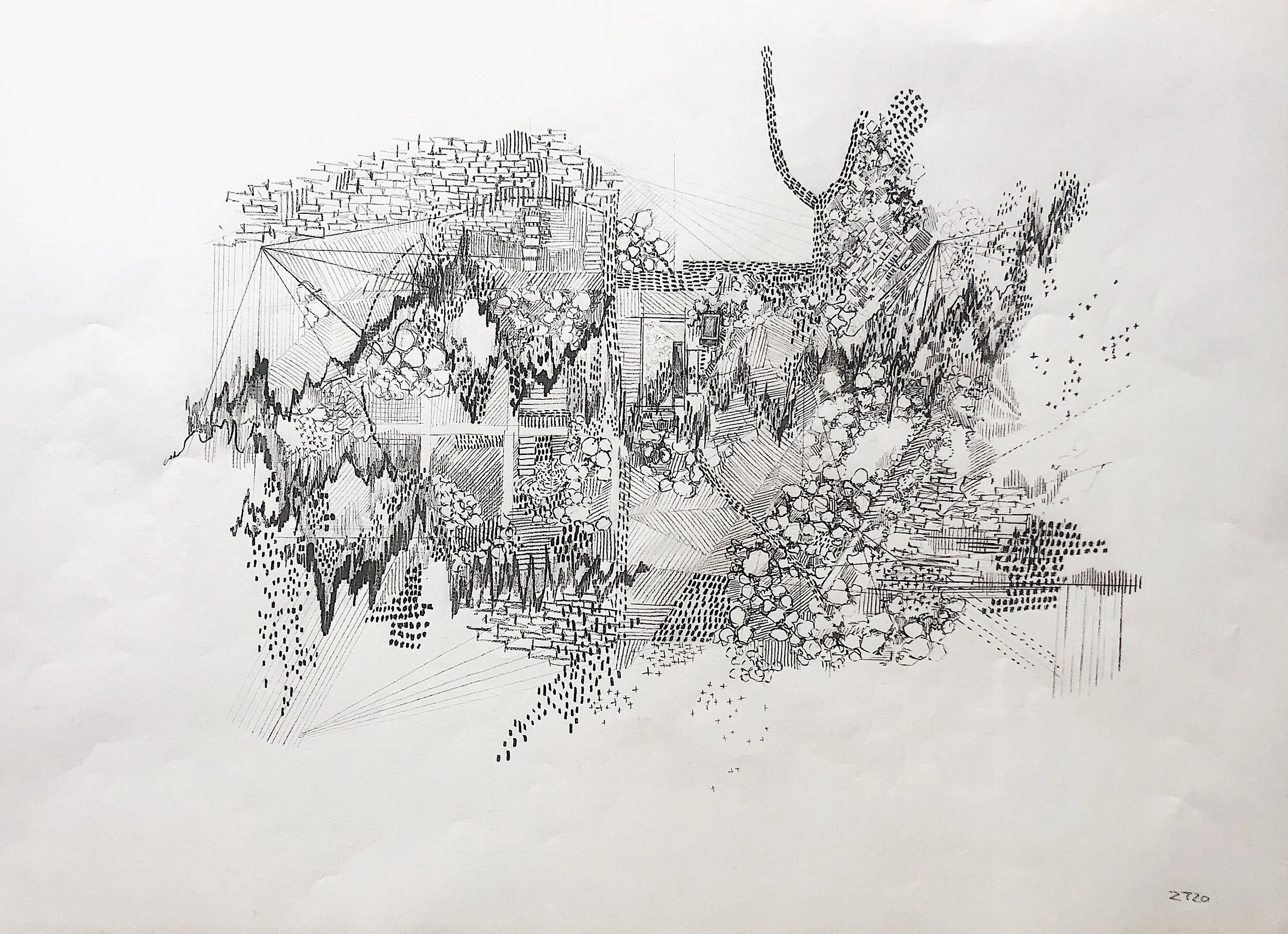Using each drawing as a meditative practise, Tisma seeks to work through unsurfaced emotions by drawing replicative maps to trigger past memories from each location. Each drawing bares a narrative to the realities and thought processes that came to life through her gestural mark making in the release of her sensitive, subconscious emotions.